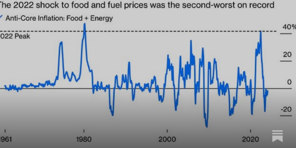 آدام توز، تاریخدان بریتانیایی در دانشگاه کلمبیا در مورد اینکه چگونه اکثریت بزرگی از مردم میتوانند به درستی احساس کنند که در چهار سال گذشته به شدت تحت تأثیر اقتصاد قرار گرفتهاند، جدا از پرداختن به سیستم سرمایهداری در شکل کلان آن، می گوید که کافیست فقط بهطور خاص نگاه کنید به شوک قیمت غذا/انرژی در سالهای ۲۰۲۱-۲۳، که به گفته توز بدتر از شوک سال ۱۹۷۳ و تقریباً به همان شدت شوک سال ۱۹۷۹ بوده است.