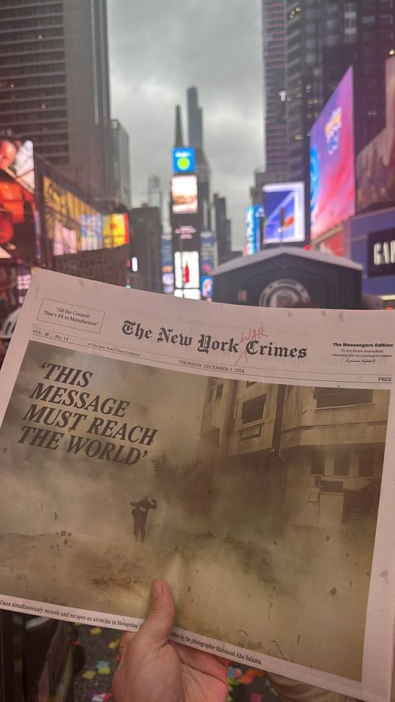 گزارش تصویری «طبقه» از اولین تظاهرات علیه نسلکشی و ابراز همبستگی با مبارزات خلق فلسطین در سال نو میلادی در تایمز اسکوئر نیویورک که به دعوت سازمانها و گروههای چپگرا